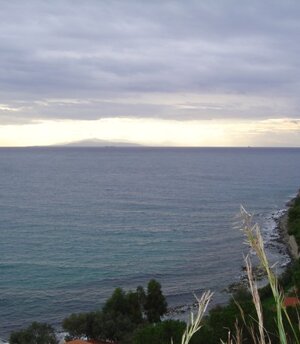 "... appena la vidi, seppi che quella terra dalla quale si scorgevano quelle magiche isole, era la mia seconda terra, e qui sono venuto a vivere. Sto su di un promontorio alto sul mare, una punta di granito troppo vecchio che si sfalda precipitando. E' un panorama stupendo. E quando dalla punta del mio promontorio guardo gli scogli e le spiaggette cento metri sotto e il mare limpidissimo che si fa subito blu profondo, so di trovarmi in uno dei luoghi più belli della Terra. Spesso, stando lì a guardare,arrivo a dimenticarmi di dove sono, tanto completamente mi appago di quella bellezza e del pensiero senz'altro egoistico ch'essa è mia, mi appartiene...".